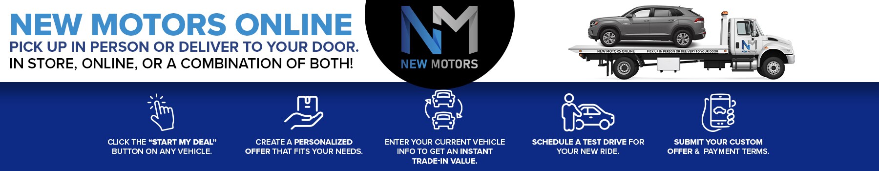 New Motors is committed to providing a simple and stress-free experience for all of our customers, which is why we've brought car-buying to the comfort of your home.